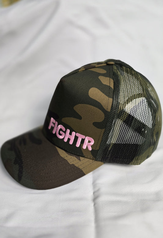 BSH6 FIGHTR Camo Canvas Trucker Hat w/ Light Pink Embroidery